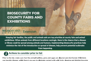 Keeping fair families, the public and animals safe are top priorities at county fairs and animal exhibitions. Follow this document on biosecurity for county fairs and exhibitions. -