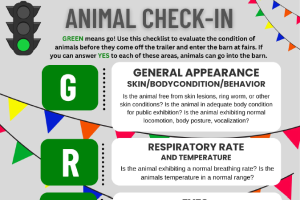 GREEN means go! Use this checklist to evaluate the condition of animals before they come off the trailer and enter the barn at fairs. If you can answer YES to each of these areas, animals can go into the barn. -