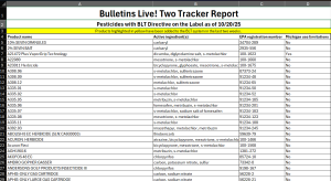 MSU Extension’s biweekly Bulletins Live! Two Tracker Report helps applicators stay up to date on Bulletins Live! Two changes, listing products requiring Bulletins Live! Two use and highlighting pesticide use limitations in Michigan. -