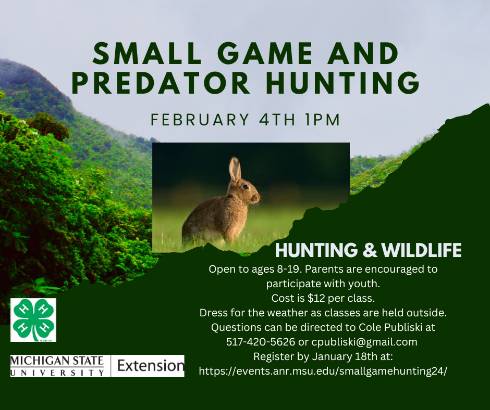 Youth ages 8-19 will learn more about small game and predator hunting at this workshop.