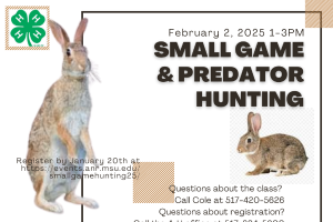 Youth ages 8-19 will learn how to hunt small game and predators at this workshop.