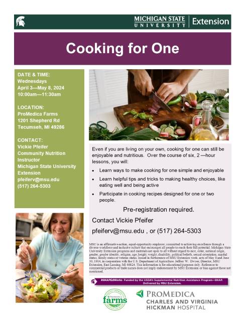 Even if you are living on your own, cooking for one can still be enjoyable and nutritious. Over the course of six, 2 —hour lessons, you will:
