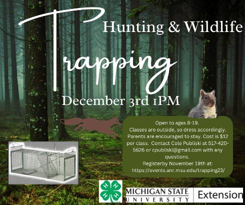 Youth ages 8-19 will learn more about trapping in this workshop.