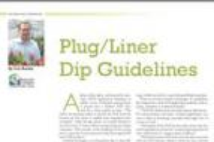 A plug or liner dip is a plant growth retardant (PGR) application technique for ornamentals in which a tray of finished young plants is placed into a shallow PGR solution for a short period of time.