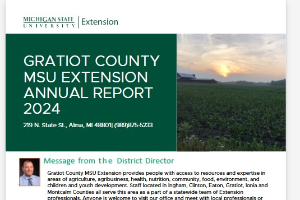 The 2023 Gratiot County MSU Extension Annual Report contains information about the programing and participation by residents of Gratiot County and the State of Michigan during the 2023 programing year.