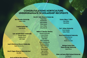 Welcome to the Department of Horticulture. The Department's mission is to prepare our students for horticulture-related careers in science and business. This includes making new discoveries in the plant sciences; promoting the use of plants and food for improved human health and a safe environment; improving the characteristics, quality and availability of horticultural products; and strengthening the competitive position of the world's horticultural industries. Faculty members possess a diverse array of expertise - both interdisciplinary (e.g., breeding, genomics, development, physiology, metabolism, molecular biology, and sustainable production), and commodity based (e.g., fruits/pomology, vegetables, viticulture, floriculture, nursery crops, postharvest, design and landscape ecology, and marketing) - which they utilize in their research, teaching and outreach programs, at both the national and international levels.