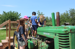 We did a wonderful hiking trip...with a baby goat! These little friends of ours love to be outdoors and walk around, with some fun treats to eat as well. We could take the goats to walk around the hay fields, into the forest, or out near the pond to enjoy the shade of the trees. Each camper got to lead the goat along the path and the baby goat certainly had a great time!