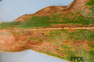 Tar spot of corn was confirmed in Michigan’s Allegan County within non-irrigated corn fields. We have confirmed the causal agent to be Phyllachora maydis. In Mexico, there is an additional species, Monographella maydis, which forms a complex with Phyllachora maydis to cause greater yield loss. So far this additional species has not been confirmed in the U.S.