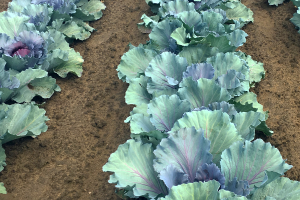 Transplanted cole crops have been placed in bare ground plots in the Bay area.