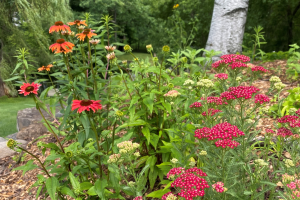 A few species of generalist moths, such as common stalk borer (Papaipema nebris), lay their eggs inside stems, and the brightly colored elderberry borer (Desmocerus palliates) lays eggs at the lower stem base near the roots. Their developing larvae, called borers, lead to wilting stems (Photo 3) and flagging in flowers (Photo 4). If you spot a drooping stem, inspect the stem for an entry hole and cut the stem to determine if a small caterpillar is inside. Japanese beetles are another possible pest, and their feeding on foliage will lead to severe damage if insects are not hand-picked off.