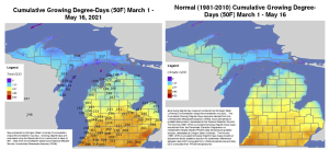*Complied low temperatures as recorded by Michigan State University Enviroweather stations during the week of May 10, 2021.