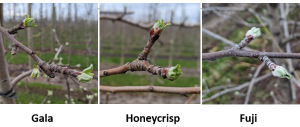 As a result of the continued rapid accumulation of degree days and warm rain, tree growth is ahead of normal and will continue to move very quickly this week. Depending on the location and variety, most apples are between 0.25- and 0.5-inch green, with early cultivars in southern areas approaching tight cluster at the end of the day Monday. By the end of the week, tight cluster can be expected in many varieties.