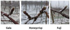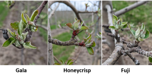 Despite the overall warmer-than-average trend, colder temperatures moved into the region during the latter part of last week. The area experienced a severe cold event on Friday morning. Several Enviroweather stations recorded lows of 17 degrees Fahrenheit between the hours of 6 and 8 a.m. These temperatures may have had a very minimal impact on floral buds and the crop, depending on the precise location and growth stage of individual orchards.