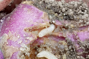Cabbage maggot is a difficult-to-control pest of brassica root crops that has historically been controlled with at-plant chlorpyrifos (tradename Lorsban) applications. Cabbage maggot flies, which look like houseflies, lay eggs in the soil around the base of radish, rutabaga and turnip plants (Fig. 1). The eggs hatch into tiny maggots that tunnel in the roots, making them unmarketable.