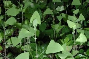 This vine is similar in appearance to native whitegrass (Leersia virginica), but whitegrass has hairy stem nodes that Japanese stilt grass does not possess. In addition, native whitegrass has scaly roots whereas stilt grass has fibrous roots.