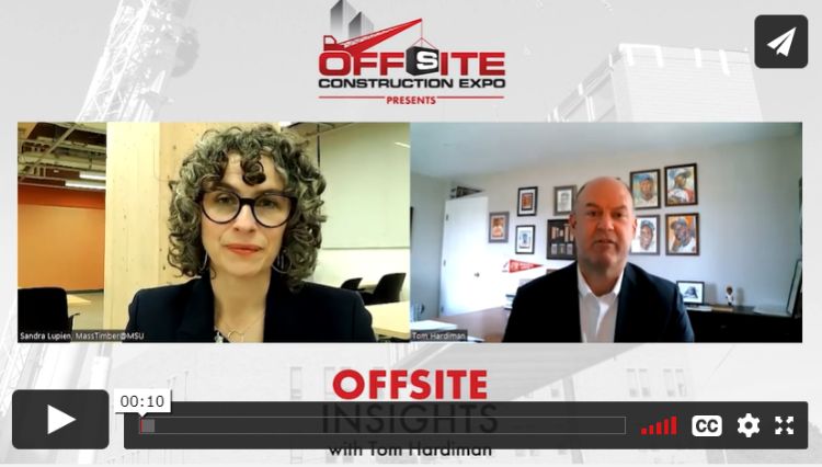 Offsite Insights host Tom Hardiman interviewed Sandra Lupien, Director, MassTimber@MSU on his series produced by the Offsite Construction Expo. Sandra enjoyed talking with Tom about the growing use of Mass Timber in the region, the benefits of this trending construction material, and the interesting ways Mass Timber could fit into the offsite construction space.