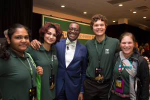 At the World Food Prize Global Youth Institute, youth delegates toured world-renowned research facilities, packed meals for Haiti disaster relief efforts, participated in an Oxfam America Hunger Banquet and networked with other young people who share an interest in addressing topics related to global food security. Delegates were also able to watch the 2016 World Food Prize Laureate Award Ceremony, where the 2016 World Food Prize laureates Maria Andrade, Howarth Bouis, Jan Low and Robert Mwanga were honored for their work in “the development and implementation of biofortification, breeding critical vitamins and micronutrients into staple crops, thereby dramatically reducing malnutrition, stunting and ‘hidden hunger’ for millions.” Through the combined efforts of the four laureates, over 10 million people are now positively impacted by biofortified crops, with a potential of several hundred million more having their nutrition and health enhanced in the coming decades.