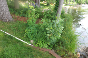 The plants selected for the rain garden may be native or have extensive root systems that help the garden absorb the rainwater. Native plants are often selected as they do not need special care, are resistant to most insects and diseases, and attract beneficial insects. Non-native plants can also be used if they are not invasive.