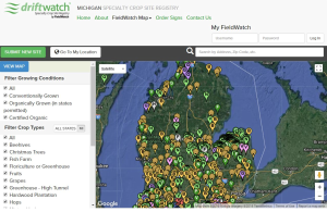 The table below presents rainfall (in inches) for the MSU Enviroweather stations in southeast Michigan, as well as degree days calculated using the Baskerville-Emin Method. Degree day average for Commerce and Hudson is over 5 years, while Deerfield is over 2 years. Rainfall is in inches, with parenthesis indicating precipitation accumulations since last week’s report.