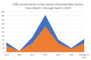 In addition, the strong push of warm air from the south has brought an influx of armyworm and black cutworm moths into the upper Midwest. Purdue University has reported high numbers of moths caught, and MSU Extension educator Paul Gross caught over 1,000 moths this week with a Hartstack pheromone trap located near Mount Pleasant, Michigan. While these types of traps are very efficient at catching moths compared to the standard bucket trap, it is clear that there are likely to be hotspots for both black cutworms and armyworms across southern Michigan.