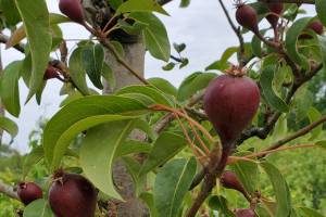 Apple fruit sizing has been good with the frequent rains. Earlier fire blight terminal strikes have dried, making them easier to see in orchards. Sooty blotch and flyspeck infection continues to be the primary disease concern. Flight of codling moth and Oriental fruit moths is continuing. Codling moth entries are becoming easier to see as the larvae get larger and push more frass out. The Trevor Nichols Research Center has reported catching apple maggot at low levels over the past month. Woolly apple aphid aerial colonies are being seen in branches of many varieties. San Jose scale red marking are common on fruit in some orchards.