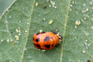 These insects sometimes enter our living spaces accidentally and become trapped when they can’t find their way back outside. They can be discouraged from entering homes by keeping weather seals around windows and doors in good condition. Keeping landscape plants pruned back so that they do not touch the structure and maintaining a 6-inch strip of bare soil around the foundation will help reduce the numbers of these and other insects entering homes.