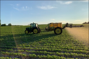 Two separate commercial soybean fields in Presque Isle County were selected for the trial based on landscape factors known to increase the likelihood of deer damage (forested field edges), and a history of significant deer damage as reported by cooperating growers. Site one was intended as a trial run to gain familiarity with the product, whereas site two included more robust experimental design to increase the probability of detecting treatment differences. In the end, weather and other production constraints resulted in methodological differences between the two sites that have allowed us to speculate about best practices for the use of DeerPro Spring & Summer in soybeans.