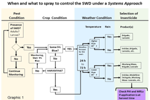 Currently, most varieties are in pink to late pink bloom stages in counties north of Allegan County. Early varieties like Wayman, Bluetta, Bluecrop and Duke are at 5 to 50% bloom in and around the Pullman-Grand Junction area in Van Buren County (see photo).