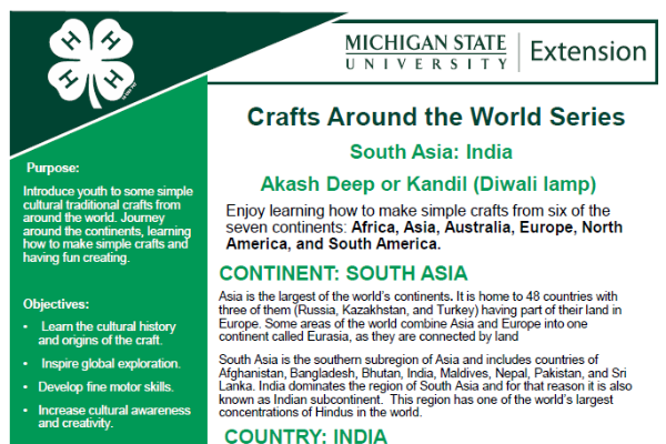 • Crafts Around the World activities