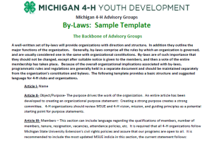 The Action Steps document is a helpful tracking tool that can be used by 4-H Advisory Groups to delegate tasks and ensure success of a project. The document requires a description of the task needing to be accomplished, the due date for completing the task and the person responsible for completing the task.