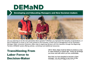 If your answers to these questions is “no,” the first step is to seek out opportunities on the farm to begin building your management experience. Speak with the current manager at your own farm and express your desire to build your experience as a decision-maker. A helpful resource is the Michigan State University (MSU) Extension bulletin Transitioning From Labor Force to Decision-Maker (E3406), which offers helpful suggestions on the steps you can take to gain the necessary knowledge and experience you’ll need to be successful.