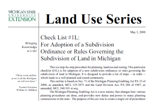 Once a plan is over five years old, it needs to be reviewed to determine if it should be replaced or not. This document presents a chronological step-by-step checklist to walk a county, village and city, or township through the process of assessing its existing plan.