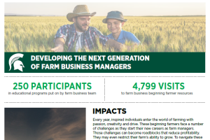 MSU Extension educators wrote articles on succession planning that reached 35,272 readers through MSU Extension, Michigan Farm News and The Farmer’s Exchange Newspaper.