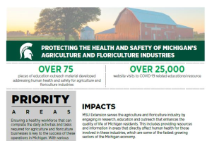 Michigan State University (MSU) Extension’s pork team is co-responsible for the development of an SPS plan at a state level and for individual pork operations. The goal of the plan is to design a workable business continuity strategy for pork operations with no evidence of the FAD infection.