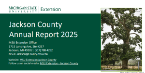 Once again, it is my pleasure to share the results of another successful year of partnership between Isabella County and Michigan State University (MSU) Extension. With your continued support, our team at MSU Extension has made a difference in the lives of youth, families, businesses, and Isabella County residents through our broad range of research-based educational programs and services!