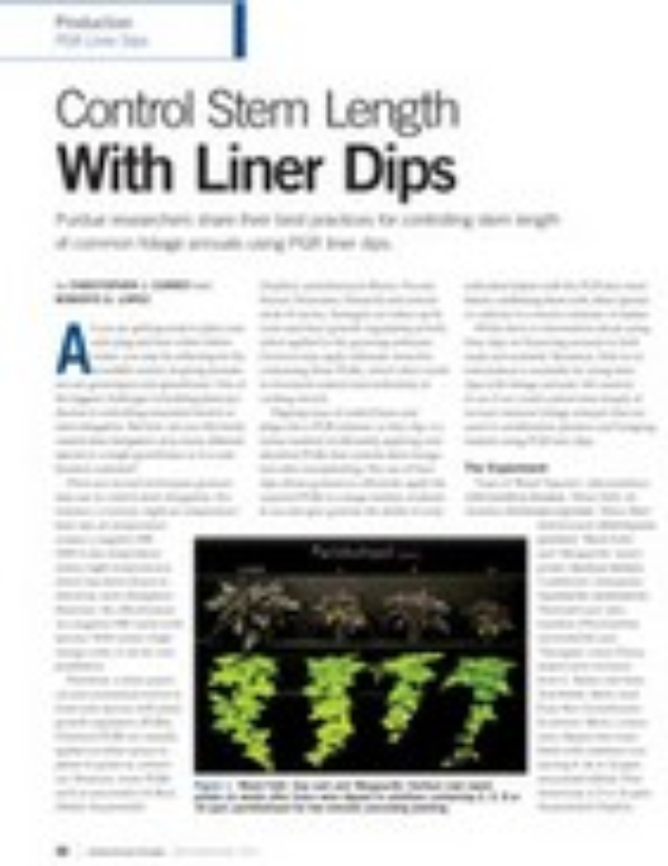 Dipping trays of rooted liners and plugs into a PGR solution, or liner dip, is a newer method of efficiently applying root-absorbed PGRs that controls stem elongation after transplanting.