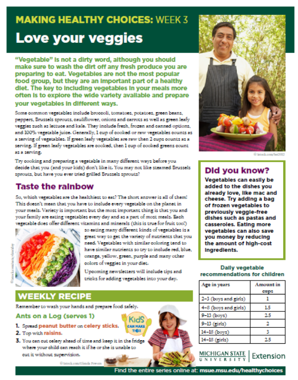 Upcoming newsletters will include tips and tricks for adding vegetables into your day.
