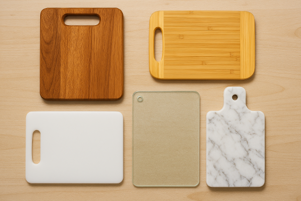 Composite cutting boards are durable and easy to clean. Check that decorative cutting boards are safe to use with food. Cutting boards made with soft wood, such as pine, are easily scratched and should be avoided. While oak is a hardwood, red oak (Quercis rubra) specifically, has open pores, allowing moisture to be absorbed, and is not recommended for cutting boards.