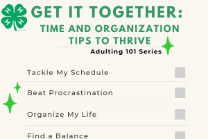 ll right. Welcome everyone to Adulting 101. This is Get It Together - Time and organization tips to help you thrive. So we've got three of us that are joining you here today from MSU Extension and our 4-H Development Program. So I am Laurie Rivetto. I am a MSU Extension educator. I'm based in Wayne County, and I get to do some amazing work with young people around preparing for the future career exploration, Workforce Readiness that includes things like time management and organization so that you're ready beyond ready for the future. I'm based in Wayne County, and my pronouns are she her and hers, and I will turn it over to Jael to introduce herself. Hi, everyone. My name is Jael Tombaugh. My pronouns are She her hers. I'm an Extension 4-H program assistant that works with Laurieon a ton of different really fun projects throughout the 4-H program. I'm also a junior at Michigan State University in the Honors College studying Animal Science. Janelle. And welcome, everyone. My name is Janelle Stewart. My pronouns are she her and hers, she her hers. Sorry about that. And I am located in Lenawee County. I'm an Extension Educator with responsibilities of our local 4-H program, as well as leadership, civic cultural engagement programming across the state. And we are very excited to hang out with you this evening and share with you. You'll be hearing mostly from myself and Jael. Janelle is going to be managing that Q&A. So if you have questions, feel free to type those into the Q&A, and she will be addressing that. For everybody, whether you're watching this live or watching the recording, we encourage you to grab a notebook at this time, maybe a scrap piece of paper. That way you can take a couple notes that will help you in the future, and we're going to have a couple times to reflect. So a large part about our 4-H programs is the opportunity to reflect on what we're learning and apply it to our lives. So even though this is a webinar format and there is not the same types of interactions that might be in a live in-person type of event, there's still great opportunities to reflect and engage with the content. We encourage you to write down ideas, questions you have, put them in Q&A, and then when we reach those question checkpoints, reflect on how you can apply the knowledge to your own life. So as we get started, we just want to remind you that MSU Extension believes fully in the principles of diversity, equity, and inclusion. We know that human differences enrich our lives, our work, and our community, and we embrace our responsibility to be a resource for all, and we're committed to providing programs to all segments of our community. It is also important to understand the longstanding history and legacy of colonialism that led us to reside on this land and to seek to understand our place within that history, and the land acknowledgment on the screen is one step in that process. Thanks for bringing all your uniqueness and your wonderful energy to our webinar today. We're glad to have you. The big thing I want to start off with sharing for time management and organization is that there's no one way that works for everyone. There is no "should" with time management or organization. You have to find a system that works for you. So I like to look at this in the way of art where some people like a lot of colors and pictures. Some people want it more muted. Some people like to create with just a pencil or charcoal. Same thing. So people need sounds or alarms or alerts. Some people want those colors and those different blocks of colors. Some people need sticky things. Some people want a minimalist approach. Some people want everything filed and others want creative energy piles. So you have to organize and plan in a way that really works for you. The key is that it has to actually work. Sometimes people get into a system where they might be trying this and trying that and doing this thing. Find the system that works for you and then stick with it once you find something that works, and the other thing I like to think about it is especially with organization, it's really important not to feel that there's a shame or that you're a bad person in terms of if you're not able to be organized or keep things looking a certain way because we all process and respond to things differently. So we're going to share some principles and strategies today and help you explore ideas that might help set up a process that works best for you. But it's also really important to ask others and learn from others. So think about people in your world who you admire for their organizational skills or for their time management techniques. Then find out what they do and try out those methods and see if it works for you because there can be a lot of wisdom out there in the people who surround you. So let's get into getting organized. So what does it mean to be organized? Typically, it's going to mean being able to find things easily, knowing where everything is at any given time, knowing where you're supposed to be at any given time, knowing what needs to be done in the future, which can relate to goal setting and planning. And then getting organized does take time, but it will save you time in the long run, reduce stress and help you focus on what's important. There's been a lot of research about being organized, and there can be benefits for stress and for um concerns about being able to handle things because you're able to find what you need when you need it. So you have a little bit of that sense of control over of what's going to happen. So again, being organized doesn't need to be something that stresses you out to get organized, but it can be an issue if it ends up becoming a barrier for you getting where you need to be in life. That's when you need to find some structure and some processes to get organized so that you don't have it become a problem for you knowing where you need to be or finding what you need so that y
