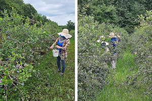 In this video we will demonstrate how to use the filter method for sampling for spotted wing-drosophila larvae in blueberries. This is a quick and easy sampling method that growers, scouts, and extension agents can use to determine whether larvae are present in their fruit. While this video shows how to use this method for blueberries, it can be used for other fruits such as raspberries, blackberries or cherries. Dr. Rufus Isaacs from Michigan State University will be talking through the different steps of this method in this video. We begin with the first step, picking ripe fruit in the field. So today I'm going to demonstrate the salt filter method with these blueberries here that we have at the Trevor Nichols Research Center in Fennville, MI. These are ripe now, so it's time to start sampling them to see if they have spotted wing drosophila larvae in them and we're going to demonstrate this method to you today. So typically what we would do is sample from an area like this. This is up next to a woods, so it's likely to have a bit more pressure than other parts of the field. So we sample and take a minimum minimum of 4 to 8 ounces of fruit. So these are ripe blueberries and already taking some of them, but you can see we would just go through the bushes a nd take the sample of ripe berries from around this area. And then we might take multiple samples from the field as well if we wanted to see different cultivars had different levels, or if different parts of the farm had different levels of SWD infestation. So put it in this container, mark it. I've got the field number here and the date, and that can just keep track of the sample later on as we go through this processs. For the second step, Rufus will demonstrate how to process the blueberries once all of the samples have been picked. OK, so we just picked these fruit from the field, these blueberries, fresh blueberries that we're checking to see if they have spotted-wing drosophila larvae in them and we do that by giving them just a light pressing to get them ready for this test. We don't want to squish them because then that will plug up the filters later. But we're going to take these two samples do that light pressing action and then this is a solution of salt water. We have one cup per gallon of salt water here so it's a strong solution and we pour that in to cover the berries. You can see there we've got two containers the liquid is covering those berries and then we can leave this solution together for like 30 minutes i s the minimum. We often do an hour because that increases the chance that we'll get all the larvae out of there so these can incubate with the salt solution and the blueberries for an hour. And then the salt solution is useful because that actually kills the larvae and then they're able to be seen. If you use just tap water, they'll be wriggling around inside your filter when you're looking at them later. So that's the difference with the solutions you could use just water, but we we like the salt water that kills those larvae in the in the filter. So next step will be to run this through the filter and then we'll look at it under the microscope. In this third step, Rufus will show how to sift the blueberries and salt water through a funnel so that the larvae get caught in the coffee filter. All right, so this is now, this sample has now sat in the liquid for an hour, and we're going to run the fruit and the liquid through there. So that separates the liquid from the fruit. And then we'll take this and give them a wash and an agitation to make sure all the larvae that might be in there come off. And then we can now separate the fruit and that sample can be thrown away. And the larvae, if there are any, should be in this filter that we're going to look at under the microscope. Before we proceed to looking for larvae using a microscope, we are going to take a look at how the sampling process looks in real time. In this case, we have a number of samples ready to be sifted on the left hand side, A bucket for the waste fruit is on the right hand side, and a garden hose with a spray nozzle attachment is easily within reach. With everything close at hand, it takes very little time to process each of these samples. Before we move on, we are going to quickly run through the supplies that are being used in this fruit processing step. The funnel that is being used is a 2 1/2 inch by 10 inch funnel. Inside the bottom of the funnel is a piece of wire mesh. The purpose of the mesh is to keep the fruit in the funnel while the salt water and larvae fall down into the coffee filter. For this video we are using wire mesh that has a hole size of approximately 0.08 inches. The coffee filter we are using is a four-cup reusable coffee filter with a wire mesh bottom. All of these supplies are readily available from online suppliers, or you can adapt this method as needed for your particular situation. Now we are going to move on to using a microscope to look for larvae in the coffee filters. For this step, we are going to use a stereo microscope to look for larvae in the coffee filters. The microscope shown here has a 10X eyepiece and a 0.5 X objective lens. This provides just enough magnification to easily see the very small larvae, but still allows us to have the entire coffee filter in the field of view. This makes looking for and counting larvae a quick and easy process. Microscopes similar to this one can be easily purchased online. While some microscopes can cost thousands of dollars, there are much cheaper options available that will only cost a few $100, and they will work just as well for looking for larvae. However, if you do not have a microscope or do not want to use one, you can also just visually inspect the bottom of the coffee filter for larvae. While you will not be able to see the very smallest larvae, you will still be able to see the medium and large larvae. If you do decide to proceed with only visually inspectin