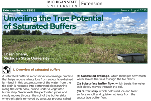 A saturated buffer is a conservation drainage practice that targets nitrate in tile drainage discharge. A new Michigan State University study used a paired-field approach to compare a saturated buffer to a free drainage control field. -